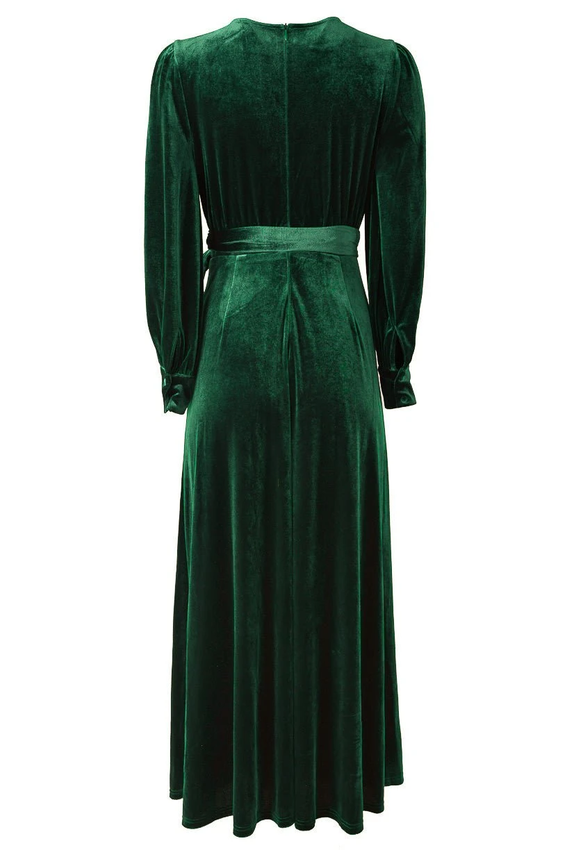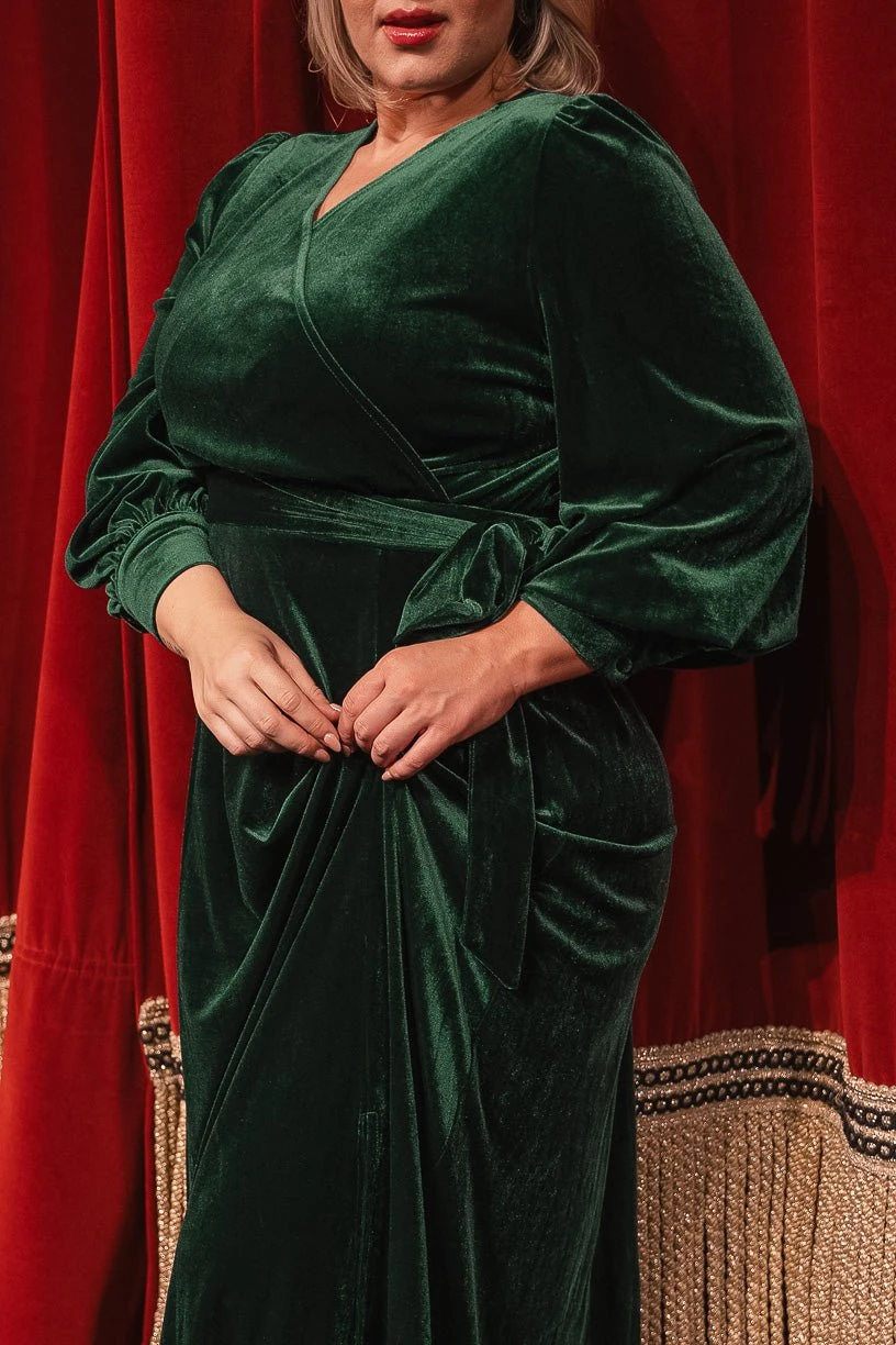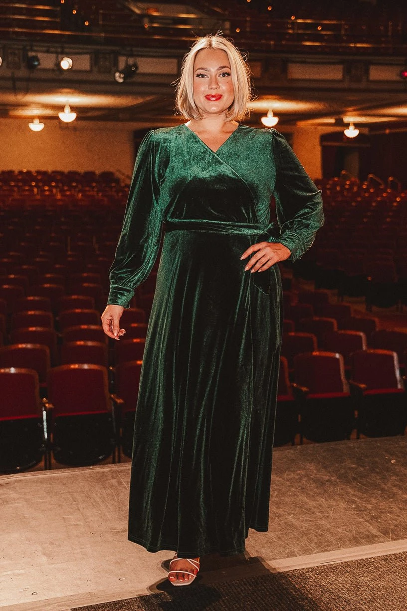 green velvet wrap long sleeve maxi dress
