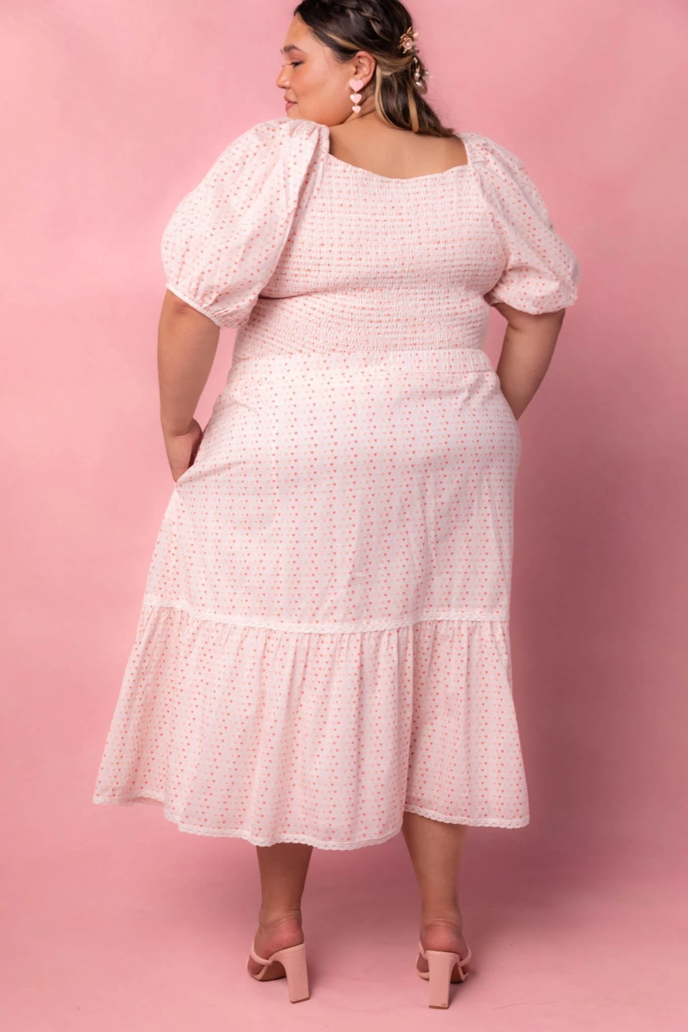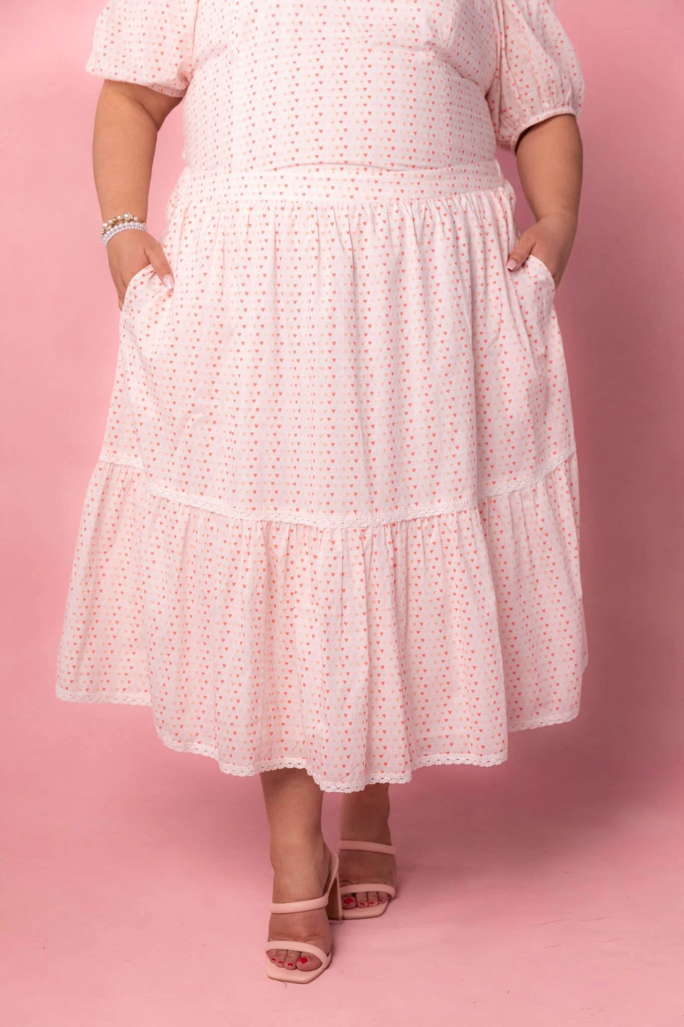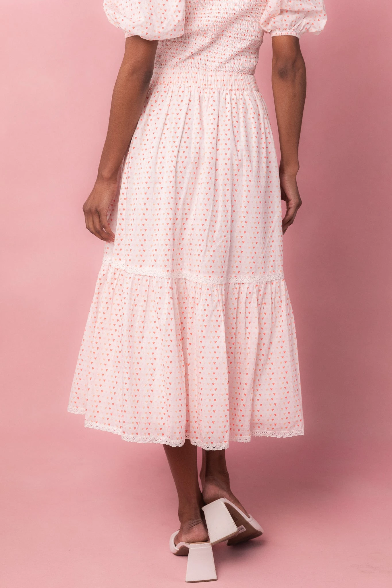 white heart print cotton midi skirt