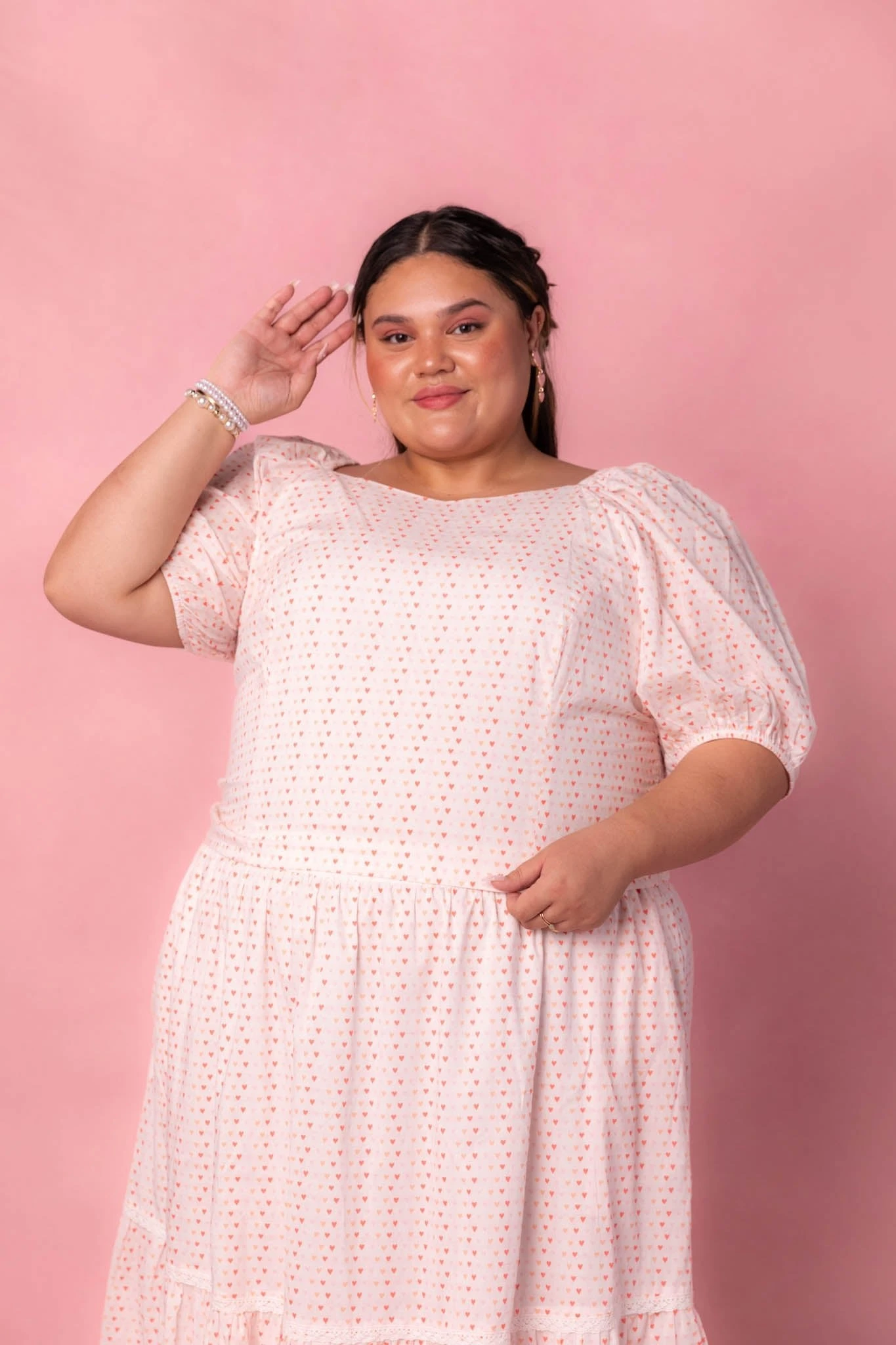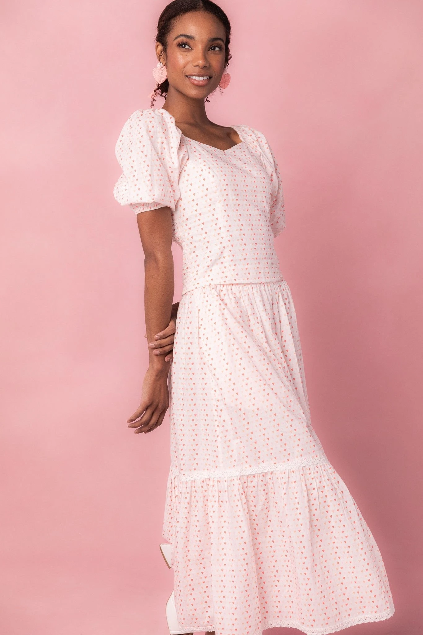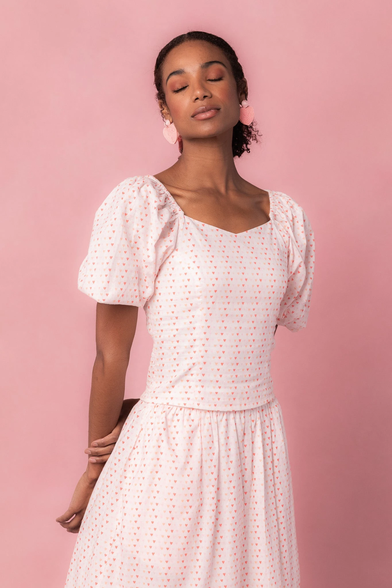 white heart print cotton puff sleeve blouse