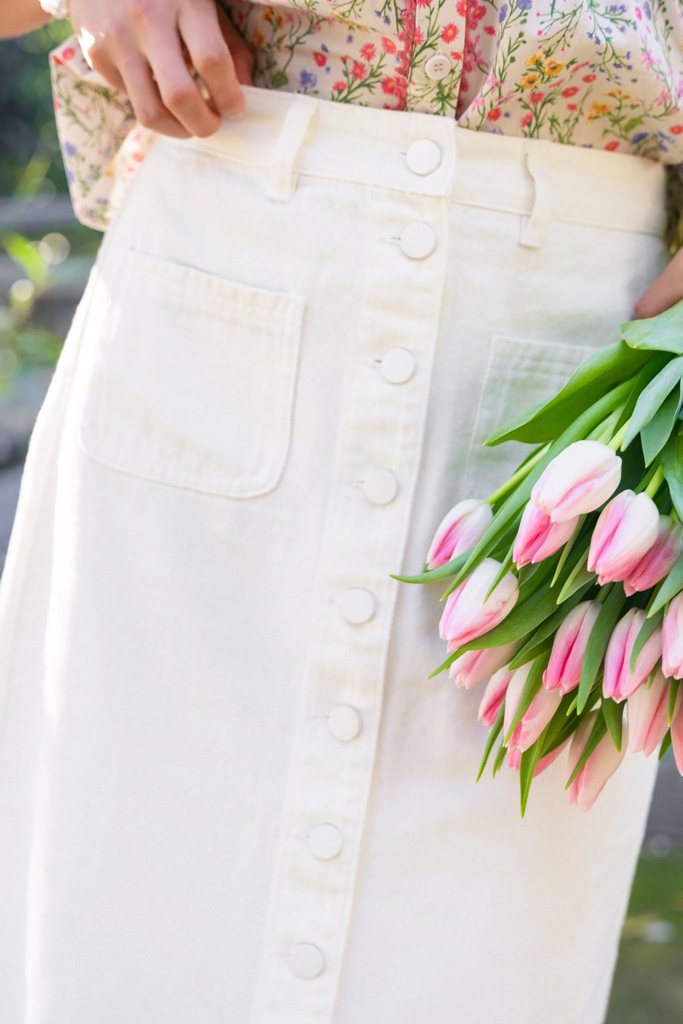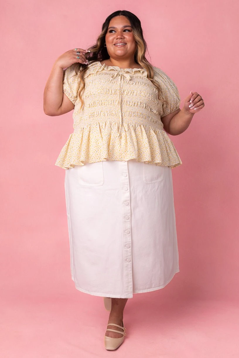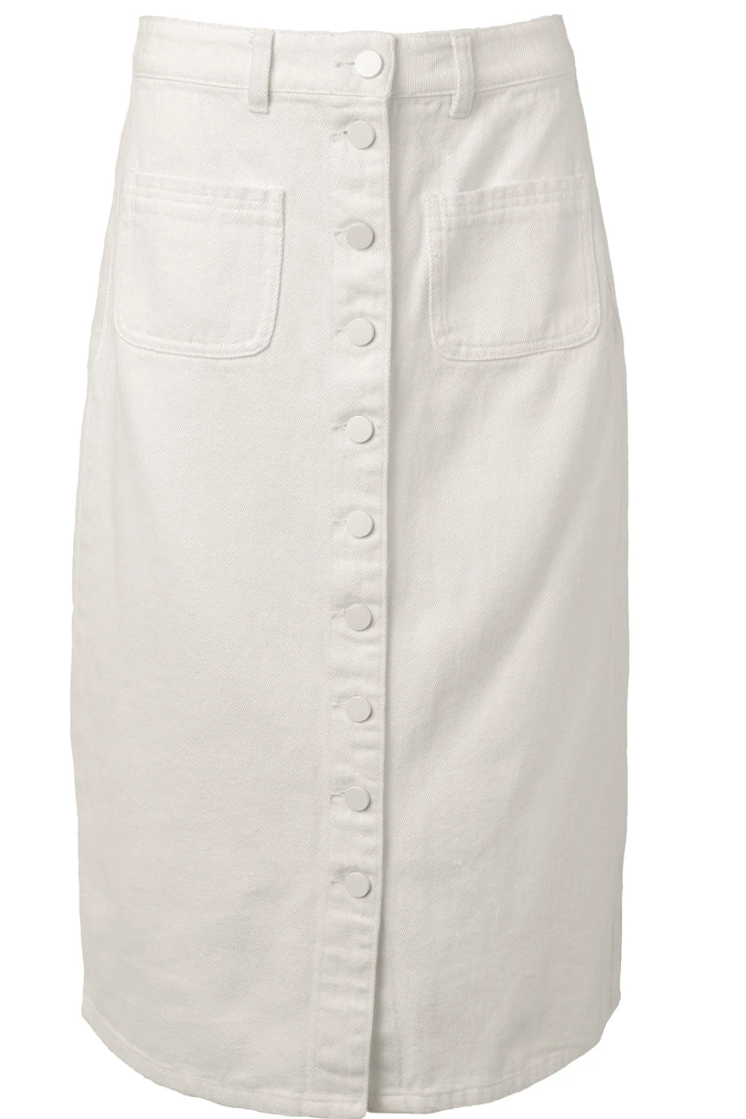 white button front midi skirt