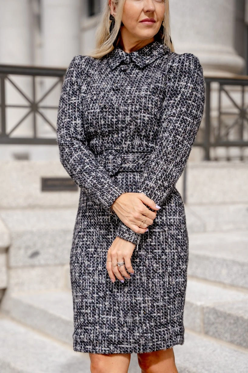 black tweed knee length dress