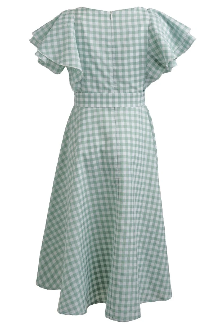 green gingham sweetheart neckline midi dress